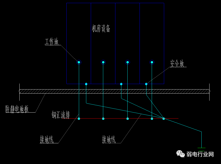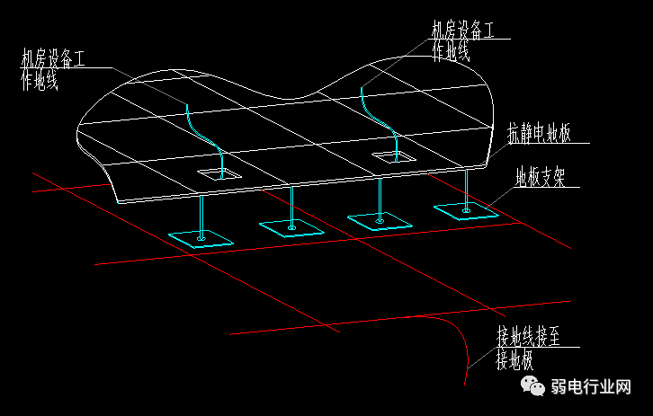 机房有架设高架地板,则应以2.5mm之多芯裸铜线缠绵高架地板柱做地网。